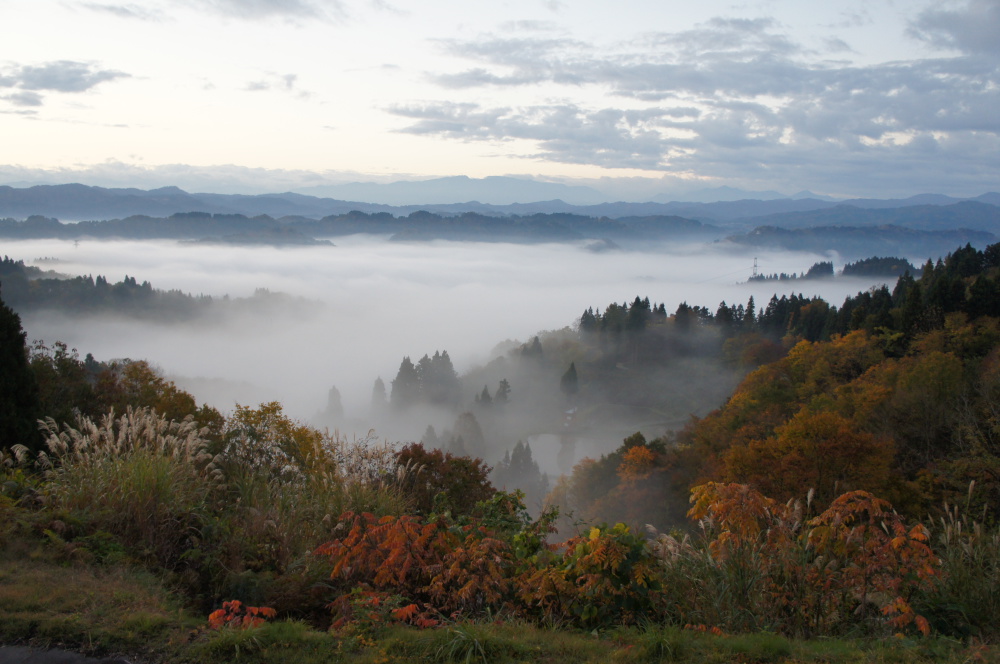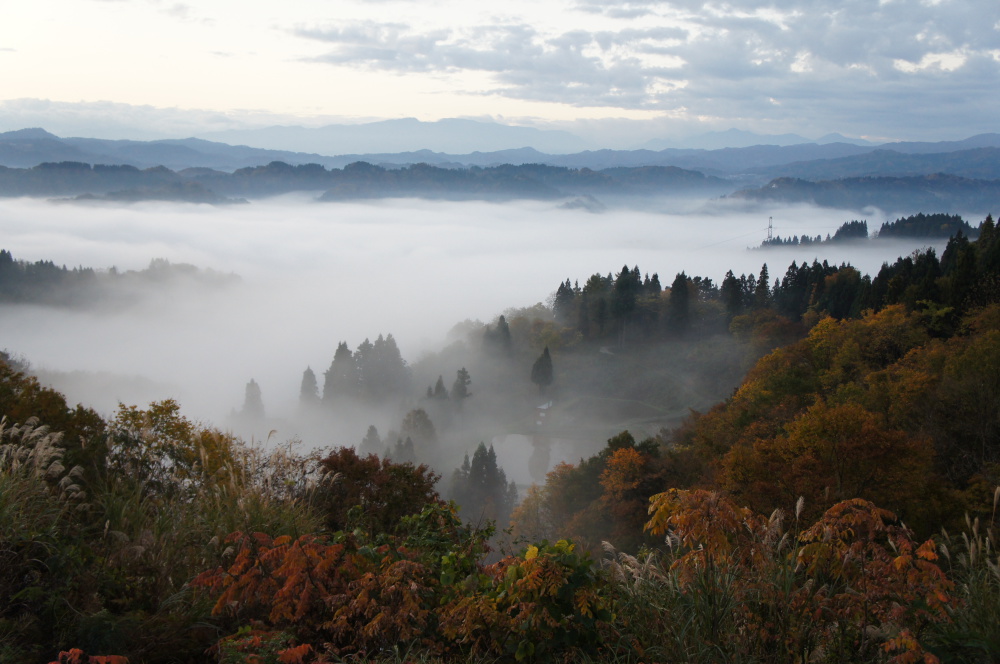 この季節だけの紅葉と雲海の貴重な絶景です。